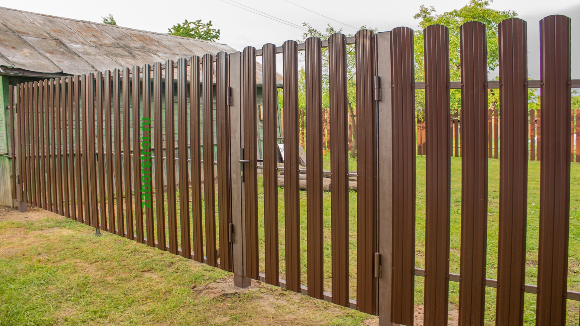 Ворота из евроштакетника распашные пример 10